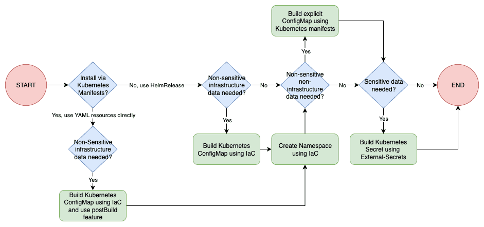 Let’s explain a bit about the problem. Cloud resources are created with the IaC tool, and they need to be referenced in Kubernetes (e.g., Bucket name, Certificate ARN, Subnet IDs, SQS Queue ARN…). But how can these values be passed to the Kubernetes resources (e.g., Deployments, Helm Chart Values…)?