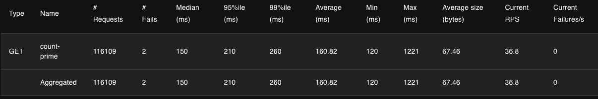 Each user in our load test waits between 1 and 3 before sending an HTTP request to our API (and this will keep repeating until the end of the load test). The limit number to calculate the number of prime is a random number between 10,000 and 20,000.
